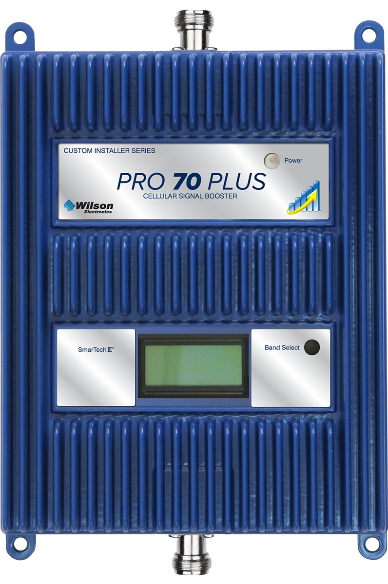 All Bands, Multi-Carrier Cellular Signal BoosterThe Pro 70 Plus from Wilson Electronics amplifies weak cellular signals to provide reliable voice and data coverage - including 4G - inside homes and other buildings where signals may not penetrate. The Pro 70 Plus features a self-optimizing microprocessor with a built-in graphical signal meter. The uplink and downlink power display makes it easy for the integrator to determine the direction of the cell tower and the strength of the available signal, which greatly reduce installation time. Like all Wilson boosters, the Pro 70 Plus features cell site protections that prevent any possibility of interference with cell towers. The Pro 70 Plus, and all CI models from Wilson Electronics, are sold only to custom technology integrators and are not available through any online or retail source. Wilson Electronics quality and an industry-leading three year warranty make the Pro 70 Plus the clear choice for the professional technology integrator. FEATURES • Boosters sold in kits with antennas • Expansion kits available for large scale installations • Self-optimizing design minimizes installation time • Compatible with all North American cellular networks • Three year warranty • FCC and Industry Canada certified BENEFITS FOR USERS • Faster, cleaner data transfers • Strong, reliable connections even in weak signal areas • Enhanced indoor coverage area • Extends battery life of cellular devices BENEFITS FOR INSTALLERS • New source of revenue • Solves a common customer problem - weak cell signals • No-cost training and certification • No-cost installation design support • Lead referral program for certified installers • Add-on sale to existing customers