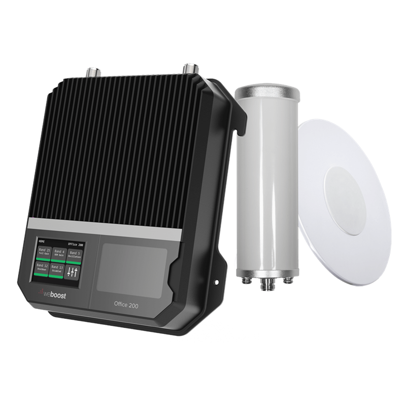 Product Description weBoost Office 200 is perfect for small to medium-sized businesses looking for a high-performance amplifier solution to improve cell signal in a commercial space. Office 200 provides reliable cell signal coverage for small businesses. With Office 200, anyone who walks into your business will enjoy fewer dropped calls, uninterrupted texts, better voice quality, improved hotspot capability, faster internet speeds, better streaming, and more. Office 200 comes with XDR technology, ensuring the booster never shuts down even with powerful outside signals and provides constant cell connectivity. To provide greater control and usability, Office 200 comes with a color LCD touch screen, allowing users to troubleshoot, assess performance, and turn bands on and off.