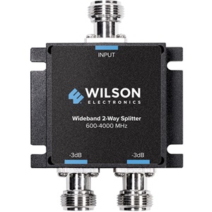 2-way splitter; splits signal evenly between 2 antennas. Required to add C-Band antennas/repeaters to existing system. Frequencies 600-4,000 MHz. N-Female connectors. Band 71, C-Band, Pro 710i compatible.