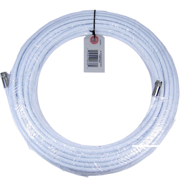 50' of 75 Ohm, low-loss, white RG6 COAX cable; F-Male to F-Male.