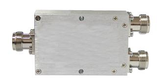 Our standard units are offered with N/Female connectors and are capable of handling 50W of power into a matched load. These units are ideal for in-building applications that require the combining or dividing of RF to accommodate multiple antenna locations. This 2-way splitter allows you to drive two interior antennas from a single amplifier/repeater. Because you are splitting the signal each antenna will receive approximately 1/2 of the signal which equates to about 48% of the coverage distance when compared to driving a single antenna. In most cases you will need to use a 68dB amplifier in order to adequately power a four way split. Connecting splitter to amplifier: Typically the splitter is connected to the amplifier using the 2' LMR-400 coax extension but any length of LMR-400 may be used. Connecting antennas to the splitter: Specifications: - Frequency: 698-2700MHz