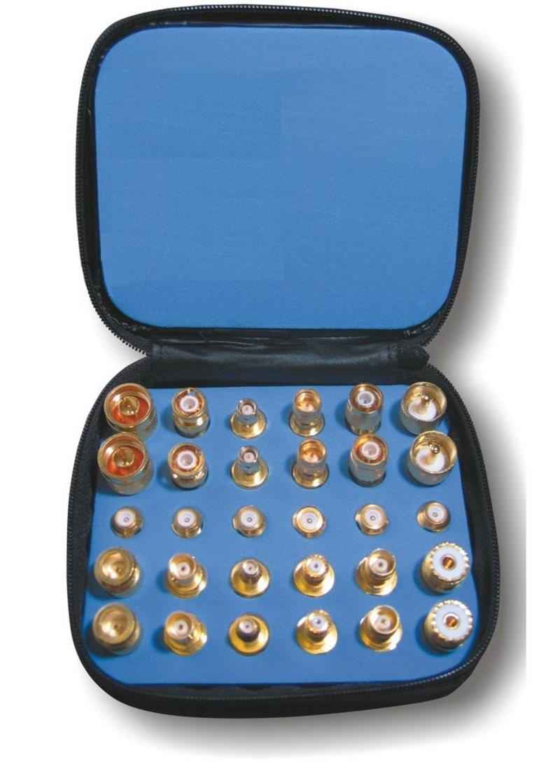 RF Connnector 30pc Kit contains everything needed for inter-series and intra-series connections between N, Mini-UHF, TNC, BNC, UHS and SMA connector types.