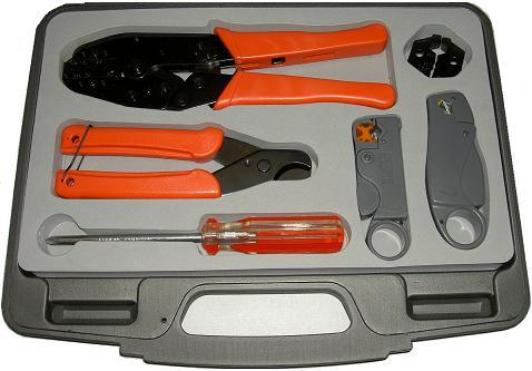 Cable preparation tool kit for RG-58, WPS-240 & WPS-400. Includes stripping tools, crimp tool with dies, cable cutter, screw driver and carrying case.
