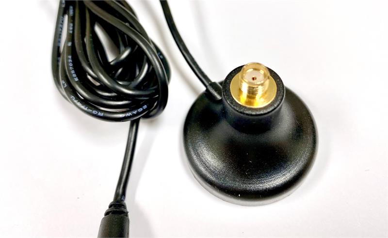 SMA/Female to SMA/Male RG-174 extension with Magnetic base. Use this base to relocate your existing SMA/Male Rubber Duck/Swivel Blade antenna to the outside of a metal enclosure or different location