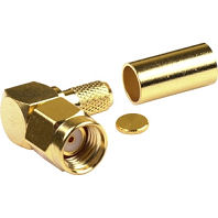 Crimp on Right Angle SMA/Male Reverse Polarity Connector for RG-58, LMR-195 Coax
