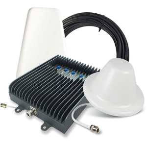 72dB five-band manually adjustable booster kit for areas up to 6,000 sq. ft. Kit includes 30 ft and 75 ft of SureCall 400 low loss coax cable, outdoor yagi antenna, and indoor dome antenna.