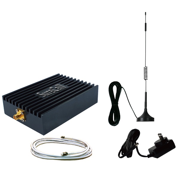 wpsantennas.com kit (Model # SC-SoloAI-15) includes: 3dB magnetic mount antenna, RG58 extension cable, USB AC power supply, screw and Velcro mounting kit, | | Key Notes: Package Contents: | About the inline amplifier included with this kit:The Cellphone-Mate SureCall SC-SoloAI-15 signal booster (inline amplifier) included with this kit is a high-performance amplifier that boosts the signal of most modem devices by 10x. The SureCall M2M signal booster from wpsantennas is designed for use in machine-to-machine (M2M) applications. Ideal for ATMs, lotto machines or with any cellular modem, this booster connects directly to the modem via a RG58 extension cable.. This AC or DC powered amplifier (AC power supplied, DC is an optional accessory) is FCC-Approved, and provides the maximum output power allowed by the FCC for use by non-broadcasters. With the SureCall SureCall SC-SoloAI-15 booster doing all the long-range work, the battery on your mobile hotspot drains slower, thereby increasing usage time. Also, with proper use of the SureCall SureCall SC-SoloAI-15 booster, dangerous hot spots are removed a safe distance from the user's body. How the unit functions: The 700 mHz LTE signal from the cell site is received by the included CM200. The signal is then amplified and transmitted to your phone through the cell phone external antenna adapter cable (sold separately). When the phone transmits, the signal is sent to the amplifier through the adapter and then amplified and sent to the cell site through the outside antenna. Compatible with: At&t LTE 698-716 MHz Uplink and 728-746 MHz Downlink Ideal for use with modems and broadband hotspot devices requiring an external antenna. Adapter may be required to connect to your particular antenna or modem. Optional Accessories (not included): SC-SoloAI-15 Inline Amplifier Specifications | | Part Number | SC-SoloAI-15 | | Frequency | 698-716 MHz 728-746 MHz