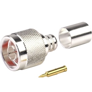 N Male Crimp Connector for use with Wilson 400 Cable or RG-8U Cable. To create equivalent cable components for cell phone signal booster kits.