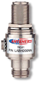 The Laird Trapper is designed with a rugged housing and high quality plated brass "N" connectors. It also features a user replaceable gas discharge tube (LA350GT). The Laird Trapper is available in three models: the LABH350NN and the LABH2400N both allow bulkhead mounting and connector pass-through and the LAIL350NN allows inline placement only.