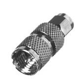 Adapts Mini UHF/Female connector to SMA/Female connector