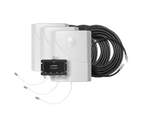 The Triple Antenna Expansion Kit contains three wall mount panel antennas, one four port splitter, one 2ft length of RG-11 cable, and 3 - 50 ft cable runs of RG-11.